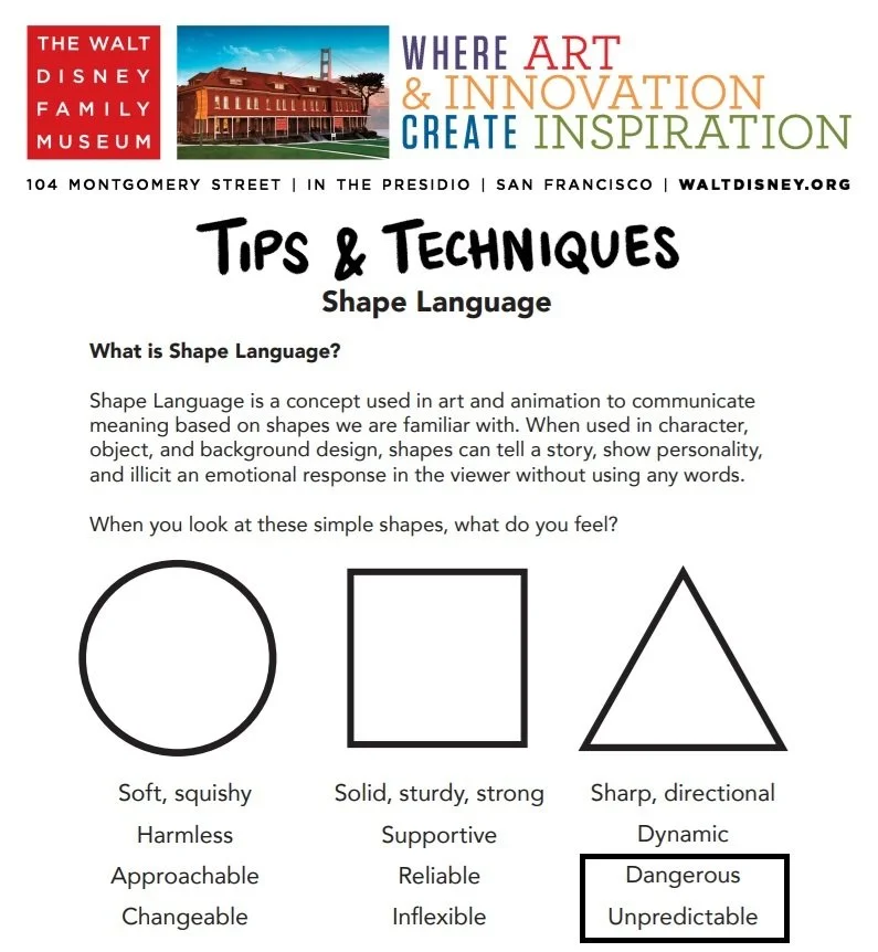 What I’m trying to do now is share some of the patterns I began noticing back then, starting with something I believe shows up in films—especially in Disney and Pixar movies. The idea is that visual elements, like shapes, may be used to subtly influence how we perceive characters and stories, possibly even training younger audiences without them realizing it.